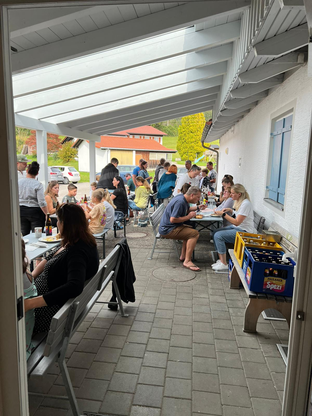 Bei strahlendem Sonnenschein traffen sich Karateka aus Karate Dojo Haldenwang mit ihren Familien beim Schützenheim in Börwang. Das Küchenteam, angeführt von Jürgen Greger, hatte sichtlich Freude die hungrigen Gäste zu verpflegen und zu unterhalten.